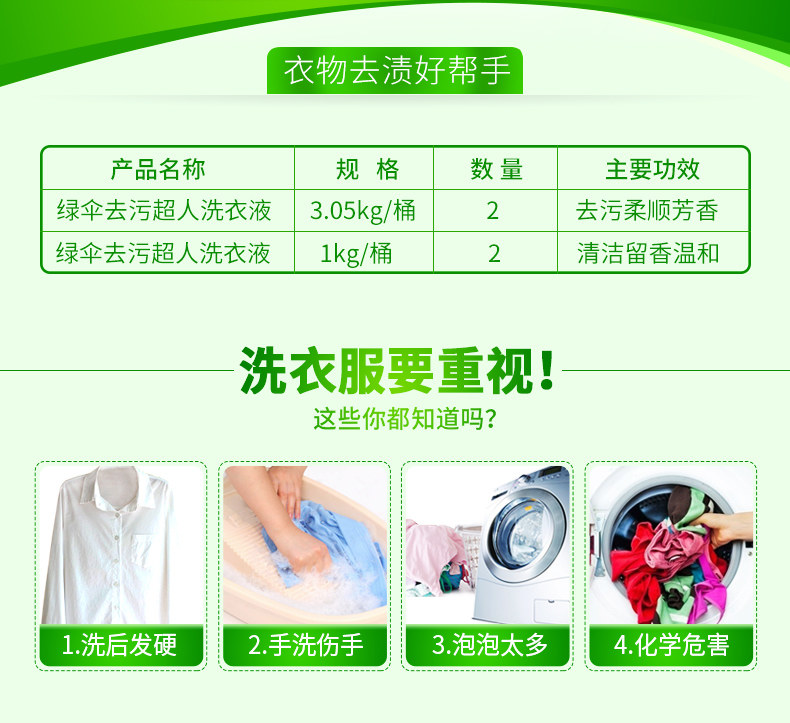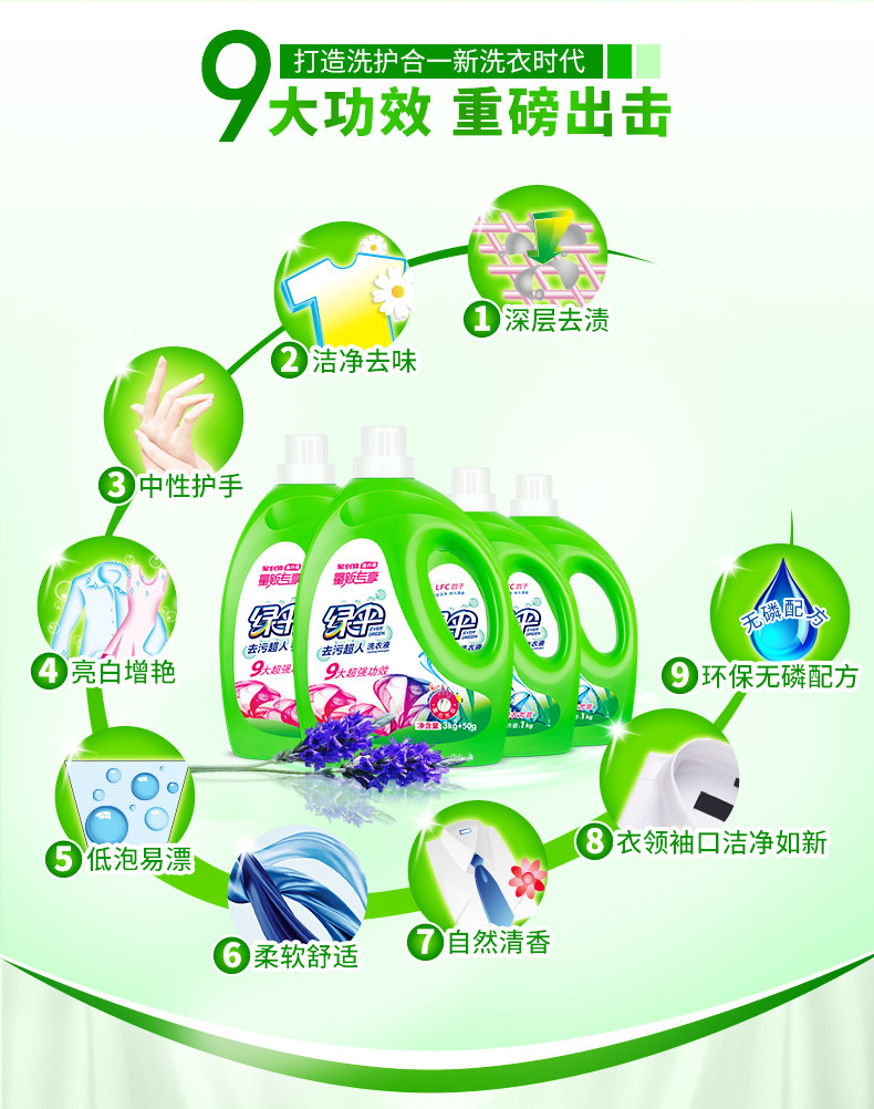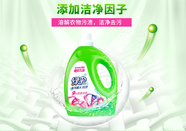 绿伞去污超人低泡洗衣液4kg瓶装 薰衣草香内衣内裤手洗桶装