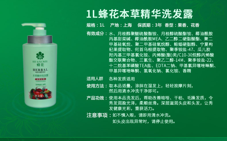 以下是蜂花洗护套装本草精华洗发水柔顺润泽丝滑护发素男女士洗发露滋养的详细说明,厂家介绍,求购联系信息,最终解释权归上海华银日用品有限公司所有