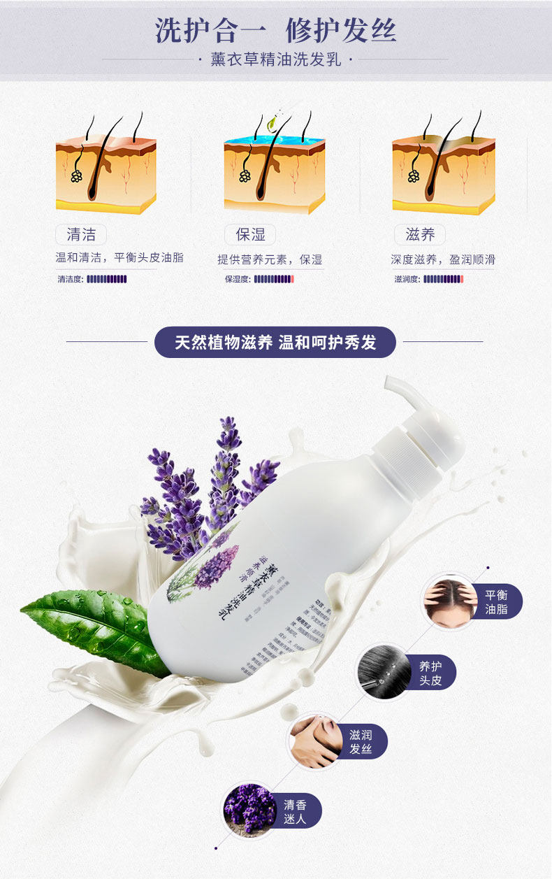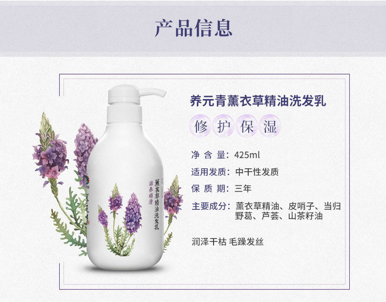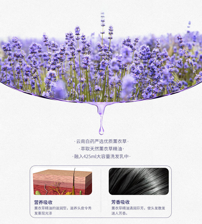 云南白药养元青薰衣草精油洗发水 滋养顺滑 大瓶425ml
