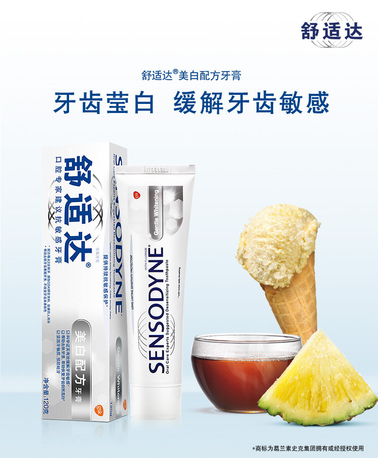 中美史克 舒适达美白配方抗敏感牙膏单支装120g去红茶渍烟渍