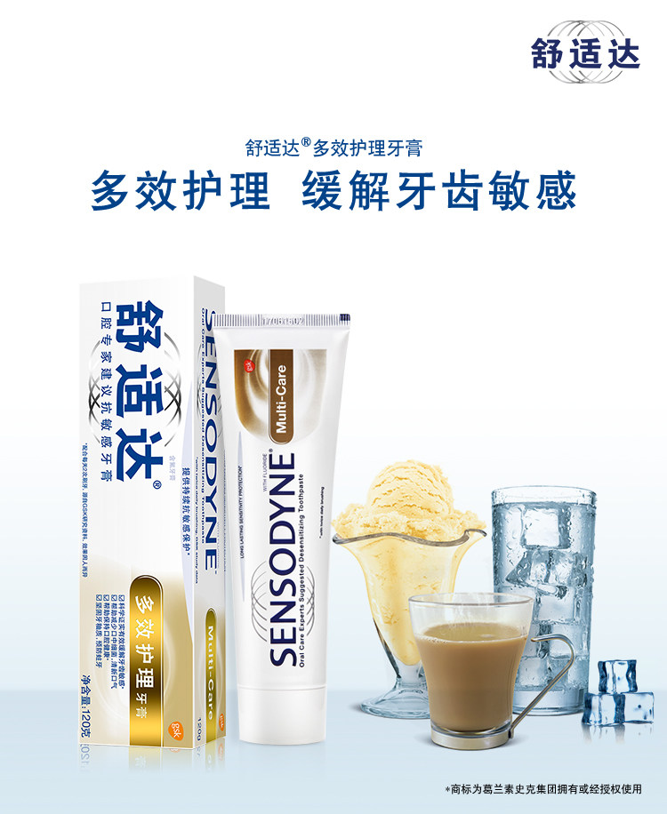 舒适达多效护理牙膏120g*3坚固牙釉质预防蛀牙抗敏感含氟化钠牙膏