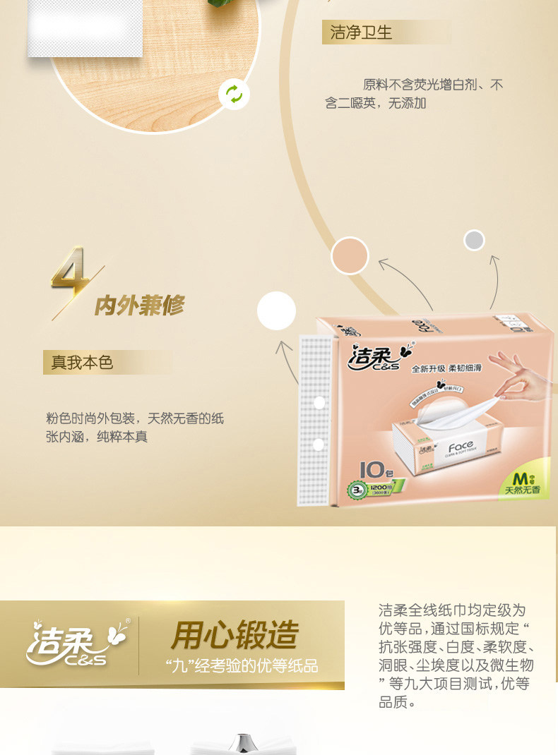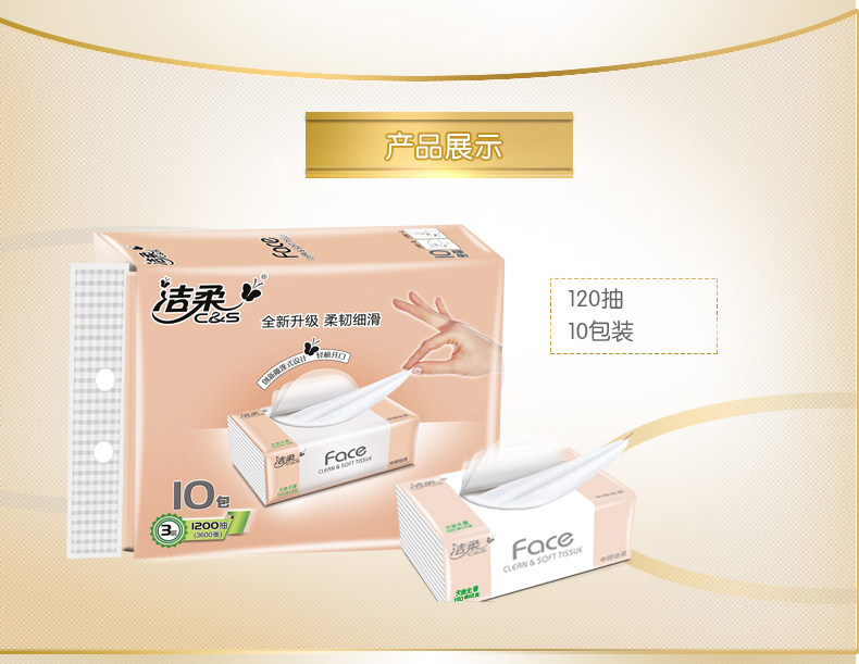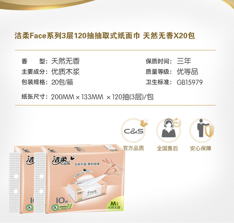 洁柔纸巾C&S无香3层高端抽纸套装18包,更柔、更韧、更厚