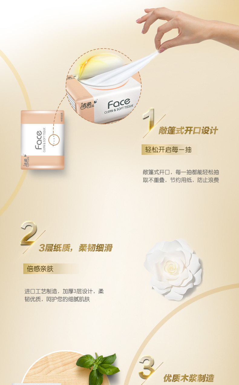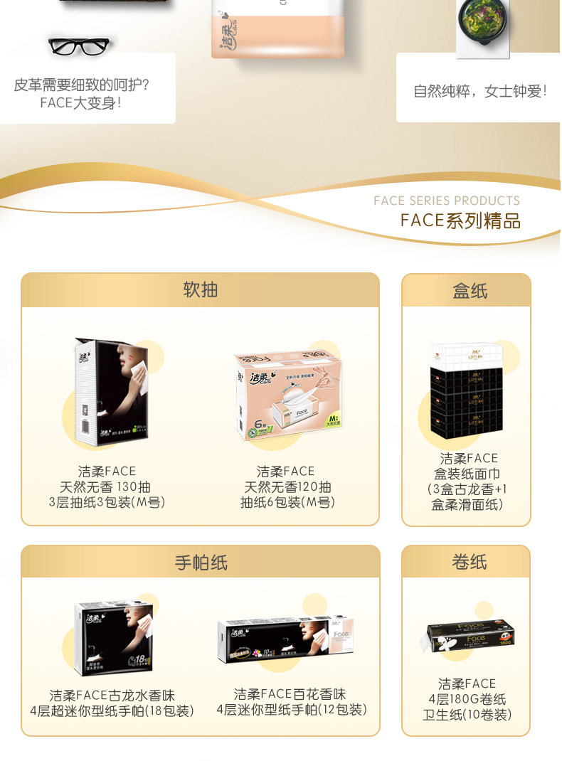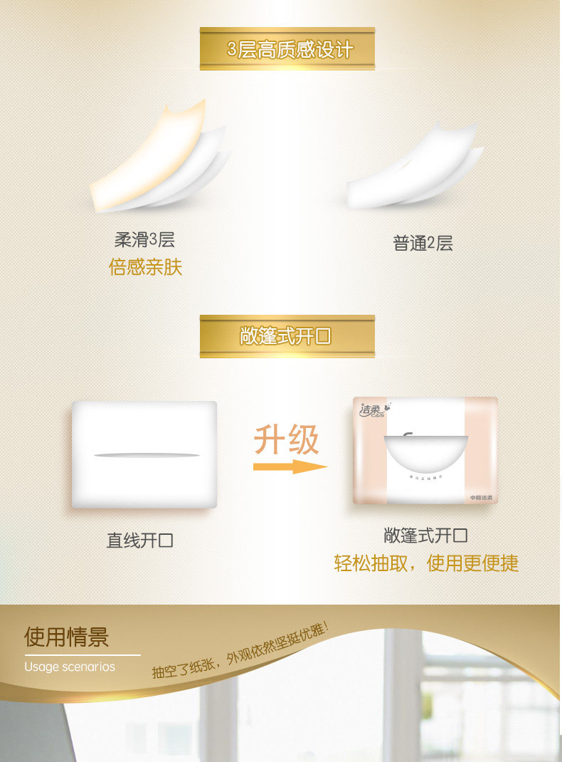 洁柔金尊抽纸无香宝宝可用3层20包家庭套装卫生纸 纸巾餐巾纸