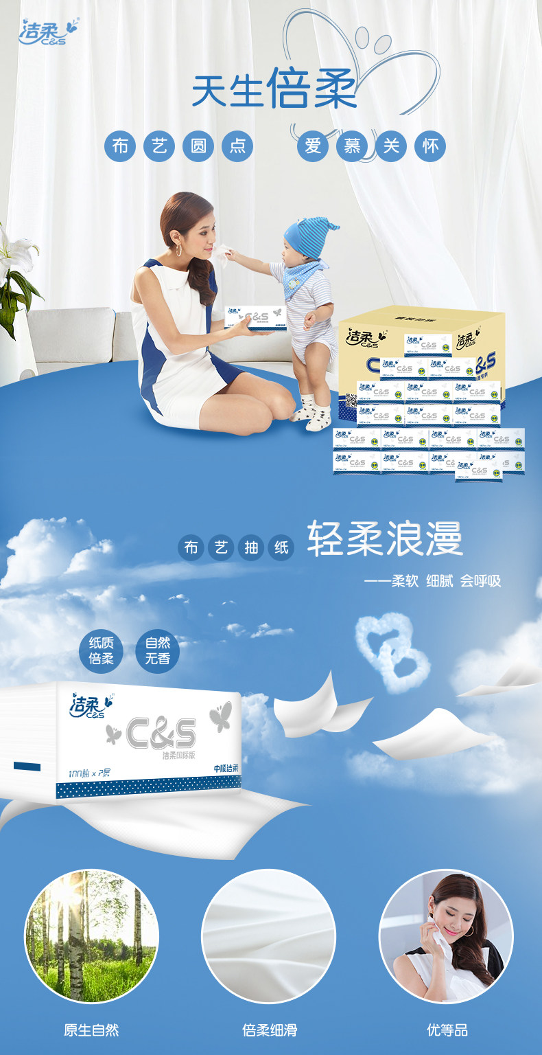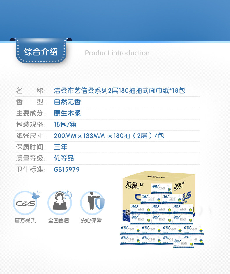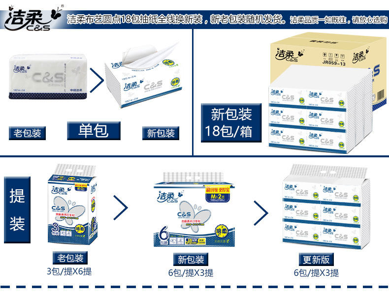 洁柔纸巾C&S无香3层高端抽纸套装18包,更柔、更韧、更厚