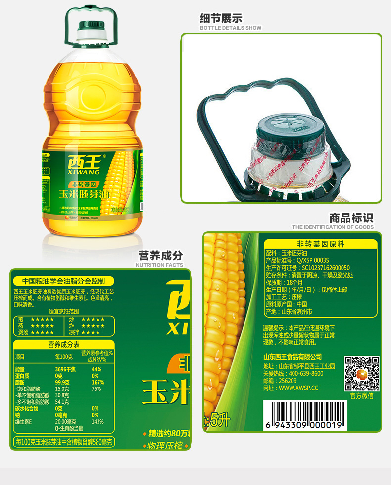 西王鲜胚玉米油900ml/瓶 玉米胚芽油非转基因食用油 小瓶装