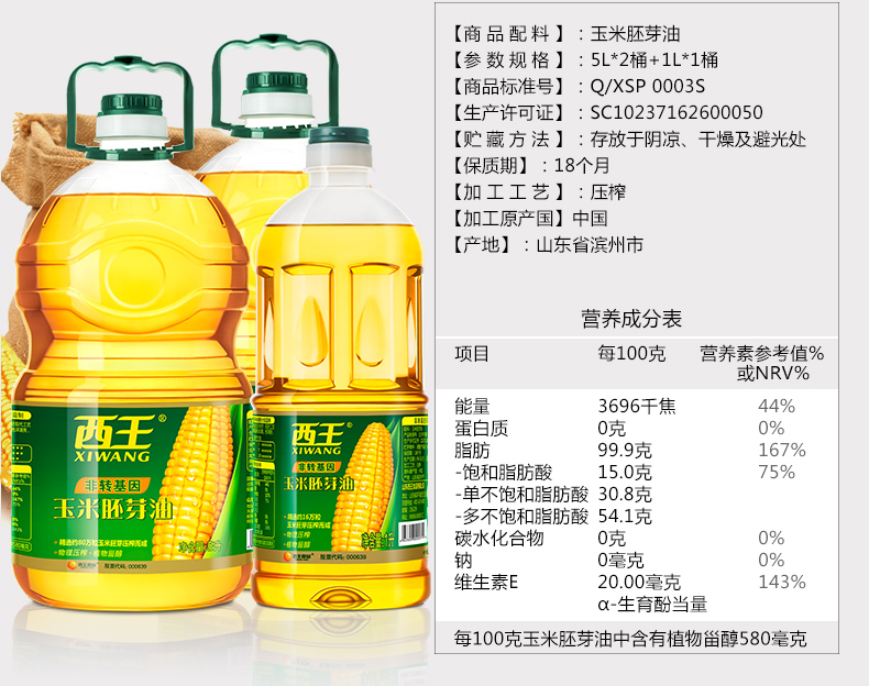 西王玉米橄榄油1.8L+鲜胚玉米胚芽油1.8L 非转基因食用油