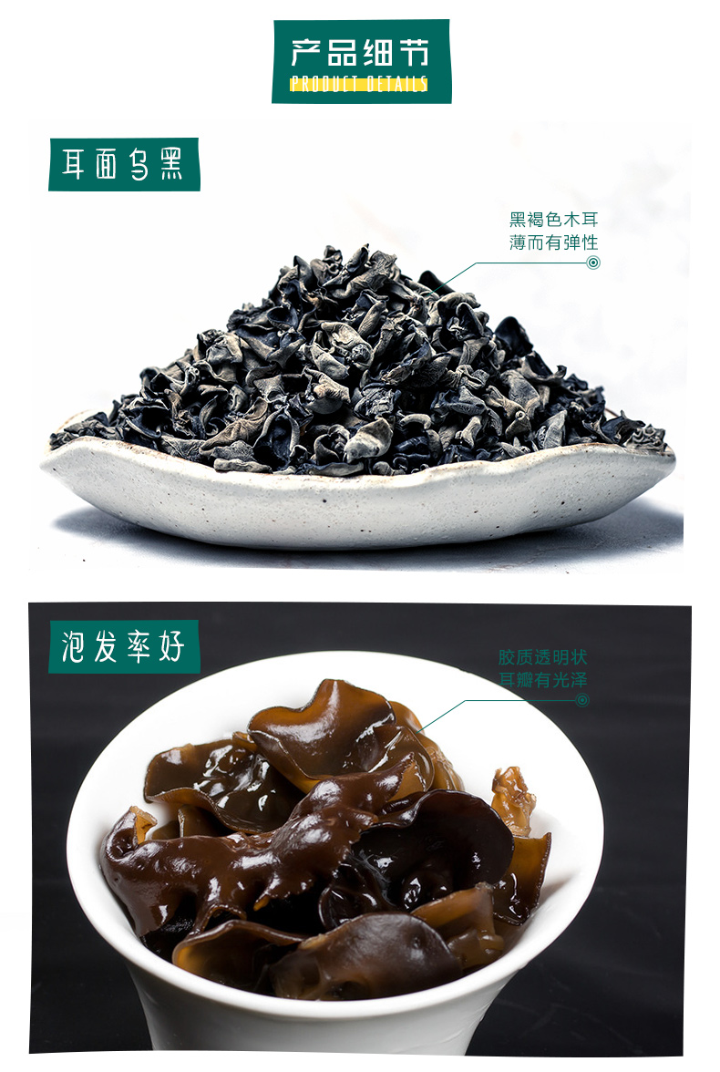 楚品源东北黑木耳 无根干木耳 秋木耳 农家干货 中耳200g
