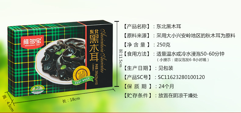 维多宝秋木耳东北 椴木木耳 东北黑木耳 干货特产 125g袋装秋木耳