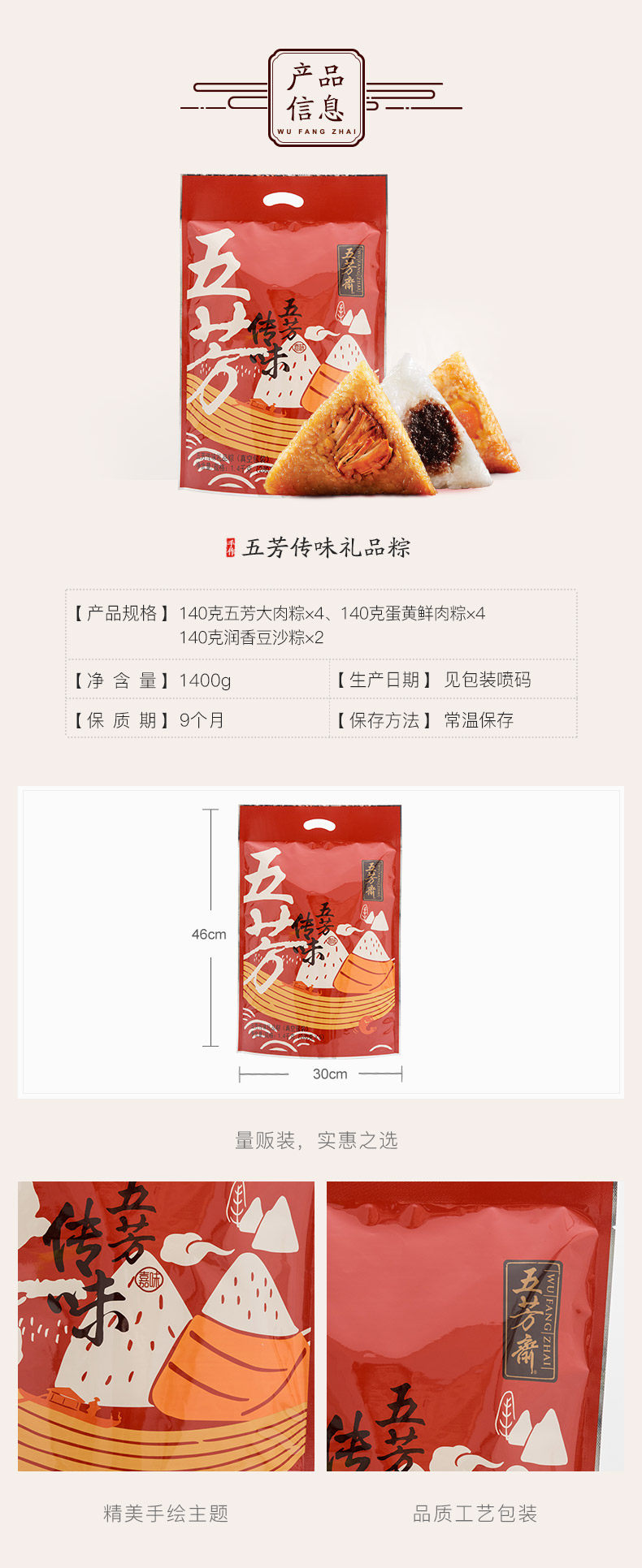 嘉兴五芳斋新鲜粽子 大肉粽+豆沙粽+蛋黄鲜肉粽各2只^@^两套包邮