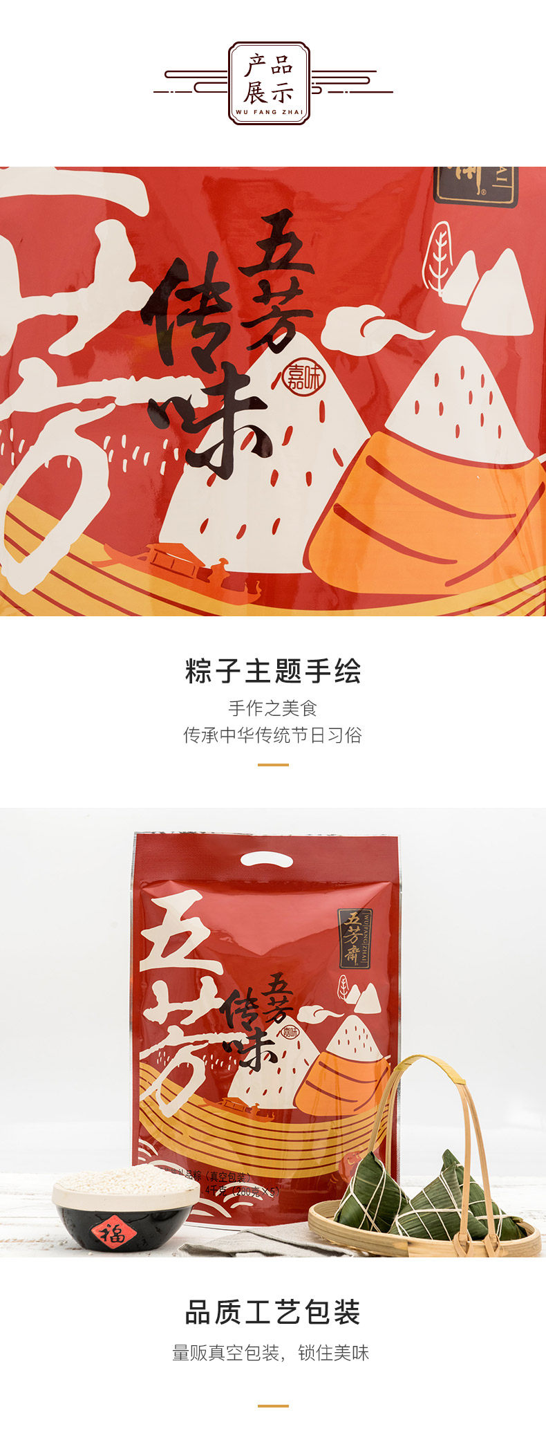 嘉兴五芳斋粽子 盛世五芳礼品粽粽子礼盒 100克*18只端午节礼品