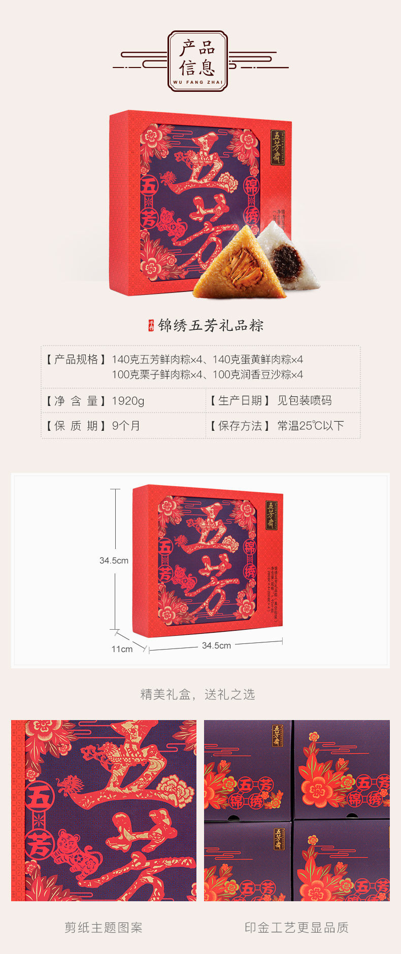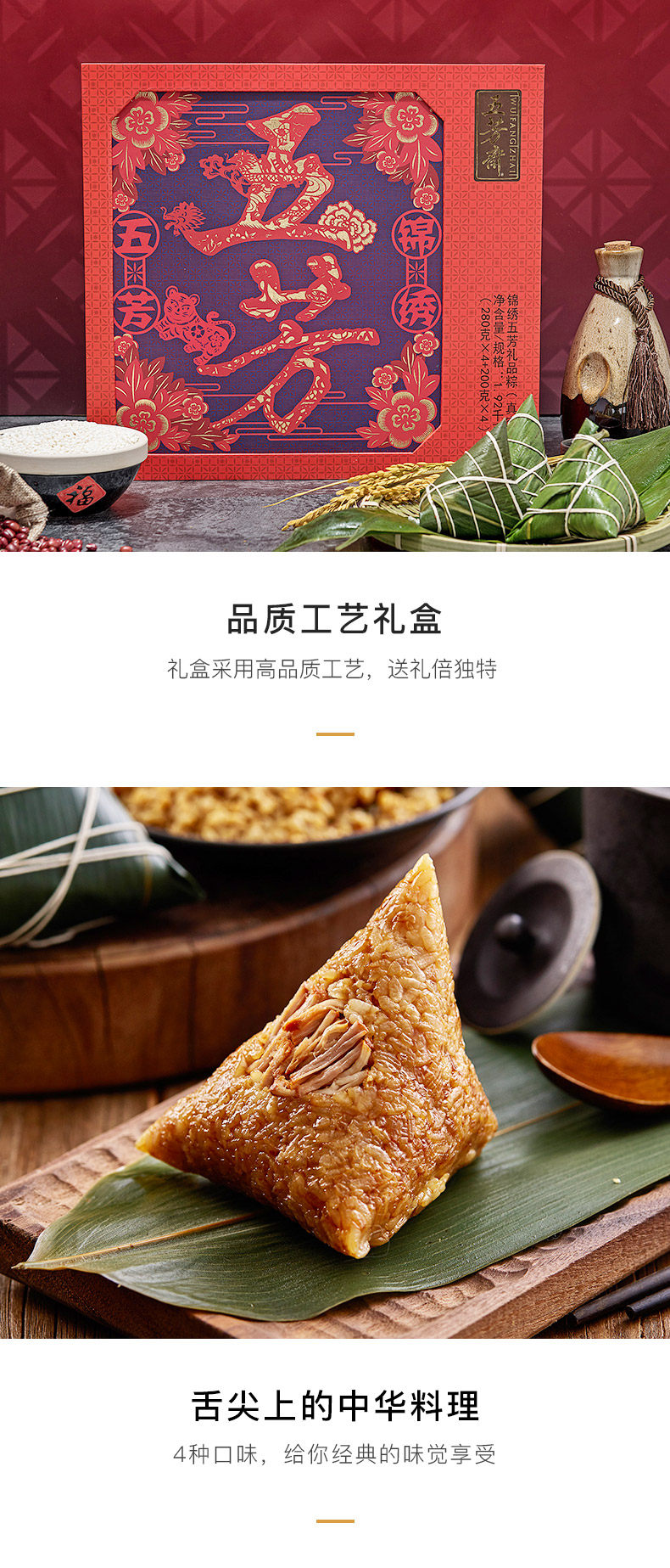 嘉兴五芳斋粽子 盛世五芳礼品粽粽子礼盒 100克*18只端午节礼品