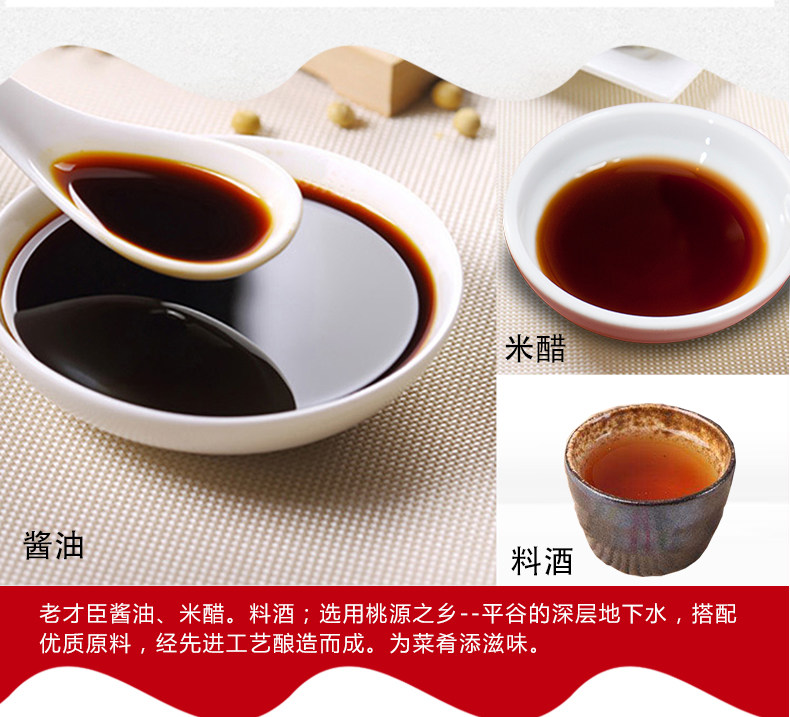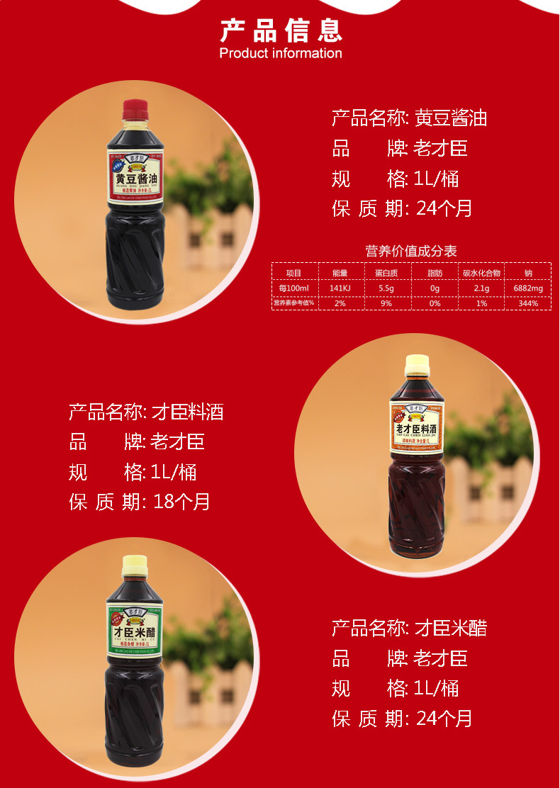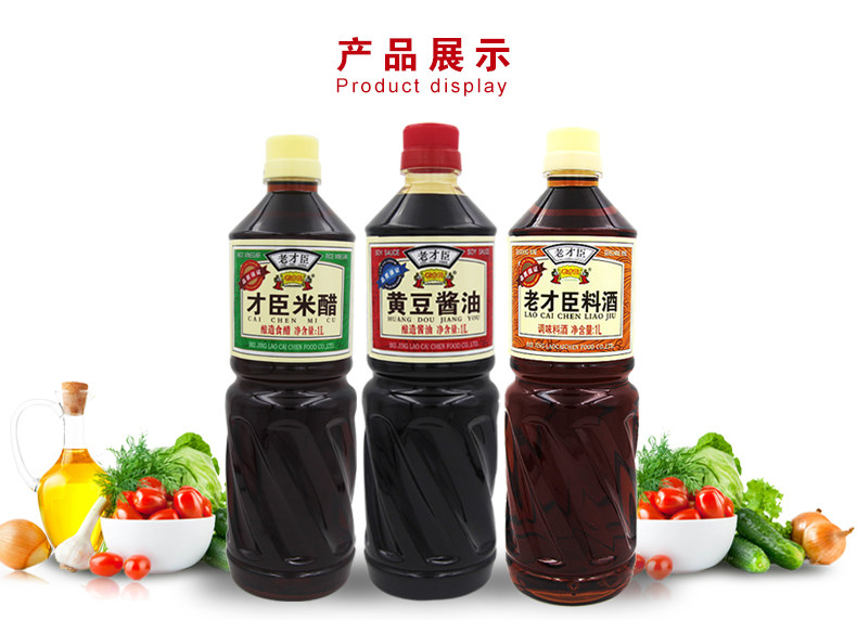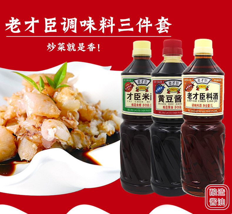 老才臣 料酒1L+1L米醋+1L黄豆酱油组合装烹饪厨房免邮调味料组合