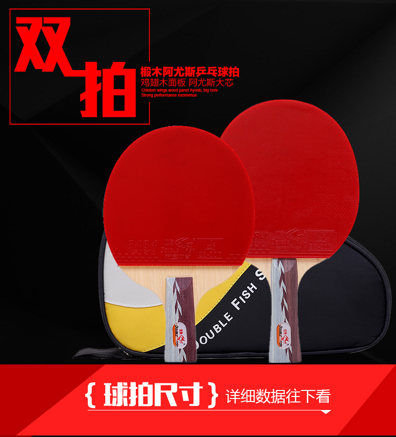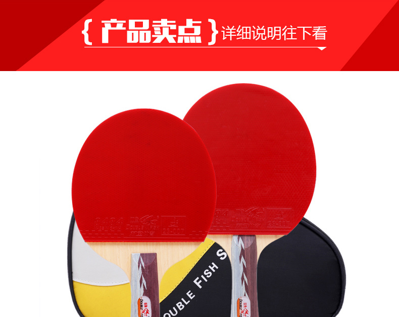 以下是双鱼乒乓球拍2只装双拍双拍袋进攻型初学者学生兵乓球拍横拍直拍的详细说明,厂家介绍,求购联系信息,最终解释权归广州双鱼体育用品集团有限公司所有