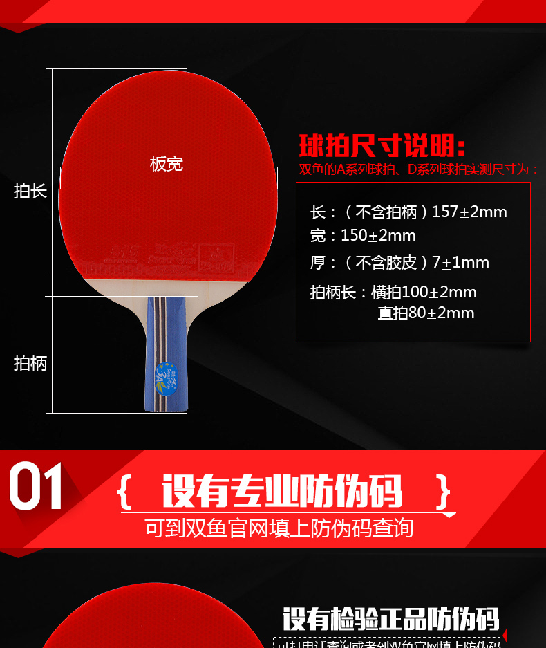 乒乓球拍双鱼单拍1只玄冰3701乒兵球拍送拍袋初学者进攻型学生