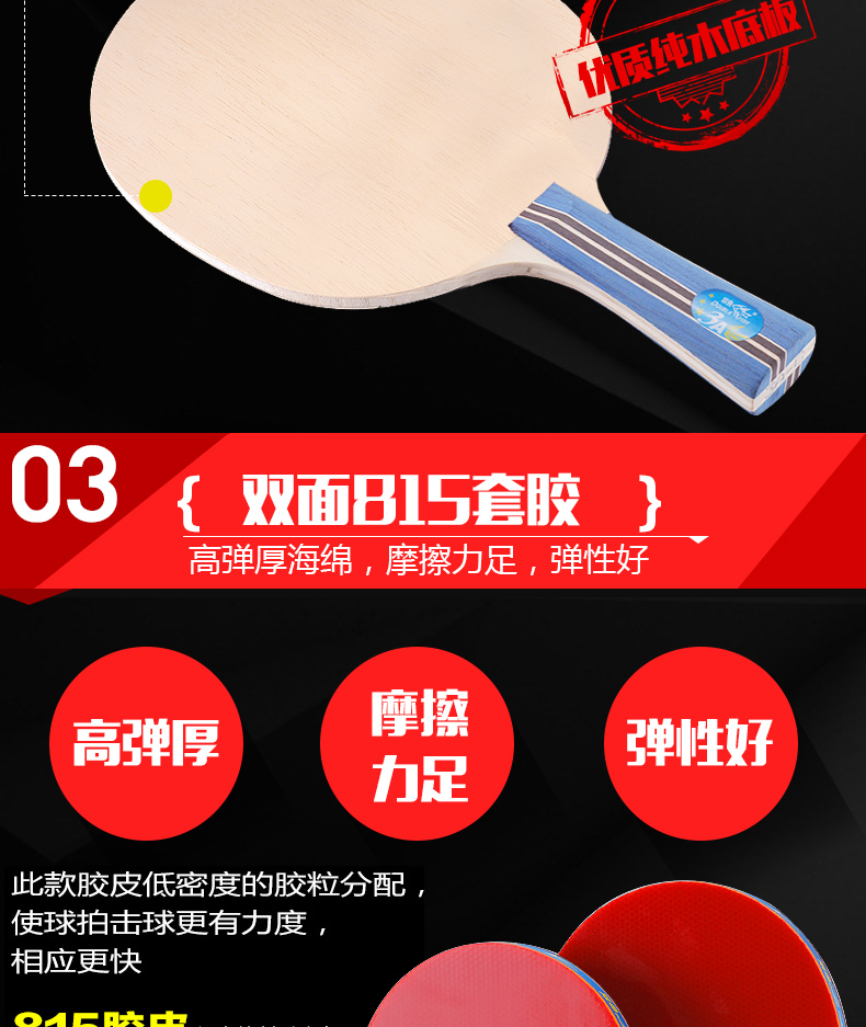 双鱼三星乒乓球拍1只单拍直拍横拍兵兵球拍3A学生乓乒球拍初学者