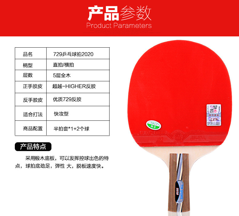 正品友谊729乒乓球拍超二星三星四星进攻型兵乓球拍单拍初学者